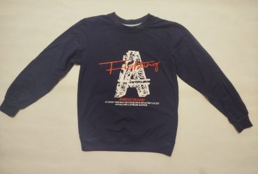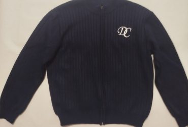Кофта синего цвета на замке и жилет с инициалами ( в школе была такая форма).